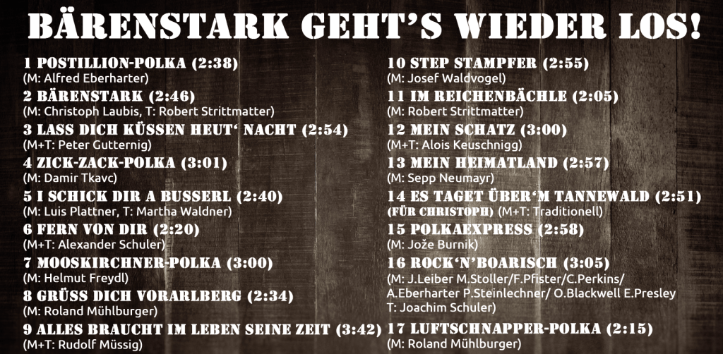 Wir sind im CD Endspurt, hier die Titelliste…