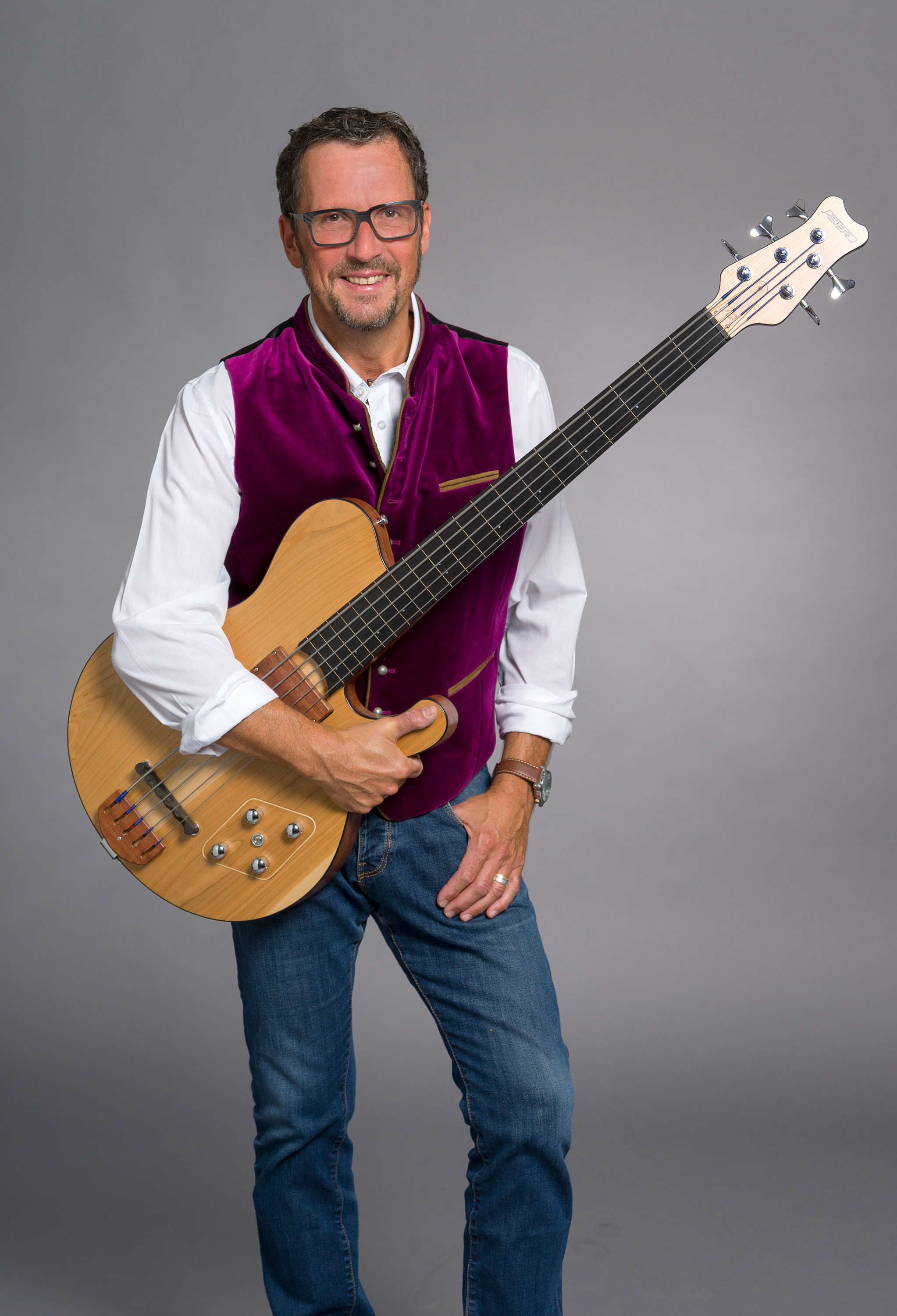 bei VoMu4 zuständig für alles was 4- oder 5-Saiten hat: Kontrabass, E-Bass, die einzigartige „MIDI Bassgitarre“. Sologesang, (Bass-)Flügelhorn, Keyboard,