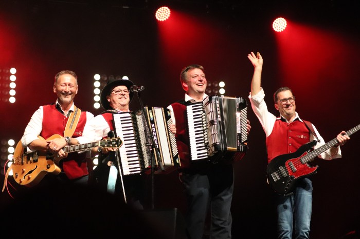 Das sind im Jahre 2016 Joe Kuttruff, Christoph Laubis, Joachim Schuler und Ralf Tritschler. Vier Vollblutmusiker, die sich mit Leidenschaft der handgemachten Volksmusik verschrieben haben. Anfang 2016 aus dem langjährig bekannten Trio „Ab&Zu“ heraus gegründet, ist das Quartett aus dem Schwarzwald nun unterwegs um mit frecher, frischer und absolut live dargebotener alpiner Volksmusik aus dem Zillertal bis hin nach Slowenien, die Freunde der Volksmusik zu erfreuen. Die Aufstockung des Trios zum Quartett brachte aber auch neue Klänge mit ins Repertoire, so dass nun mit weiteren Bläserstimmen schon länger nicht mehr gehörte Titel zu Gehör gebracht werden. Auch Klassiker aus dem Repertoire der Original Oberkrainer und dem Alpski Quintett sind mit Flügelhorn und Klarinette als Bläser mit dabei. Das Repertoire wird nun auch mit modernen Titel aus Schlager, Party, Country, Pop und Rock’n’Roll ergänzt, so dass auch Tänzer und Partygänger auf Ihre Kosten kommen. Auch das moderne Repertoire spielt Volxsmusik4 komplett live, ohne vorprogrammierte Keyboardspuren oder Playbacks.