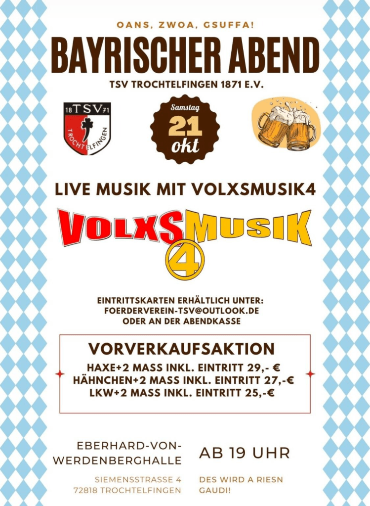 Uns gibts aber kommenden Sonntag, den 26.11.23 wieder im Radio in der „Sendung Musik aus dem Land“ von 18:00h – 20:00h in SWR4 mit 2 Titeln aus unserer ersten CD Produktion. Welche das sind verraten wir nicht!