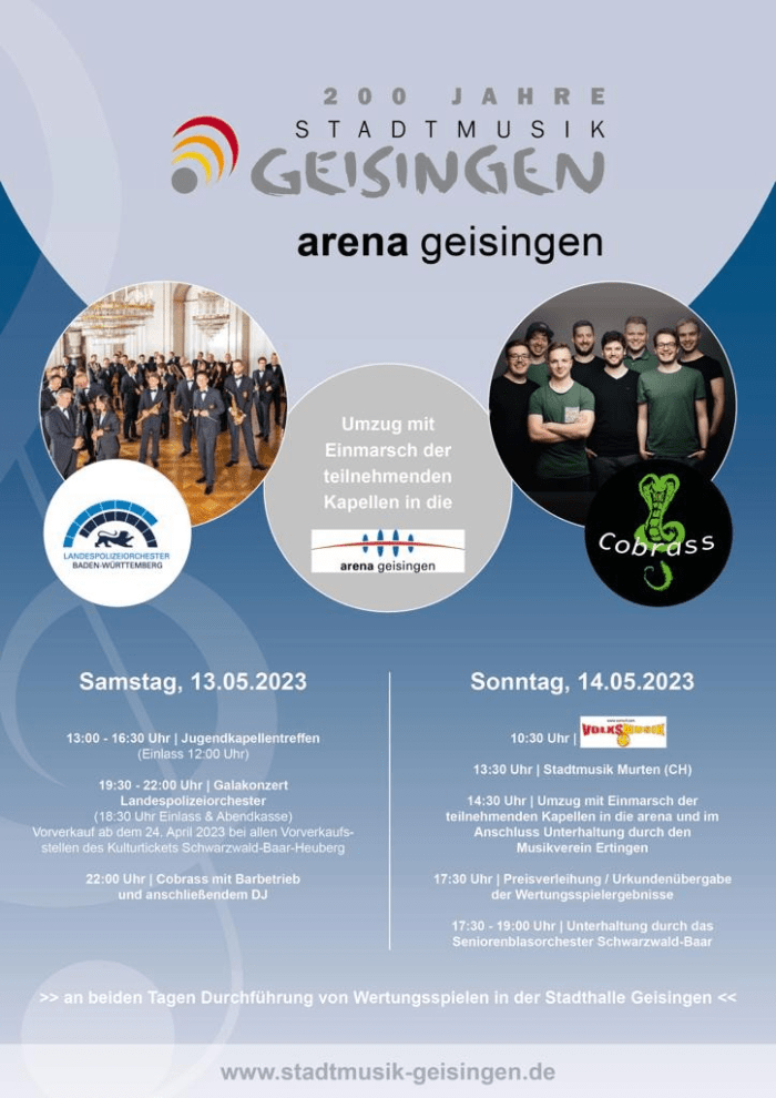 wir freuen uns am 200 jährigen Jubiläum der Stadtmusik Geisingen mitwirken zu dürfen!